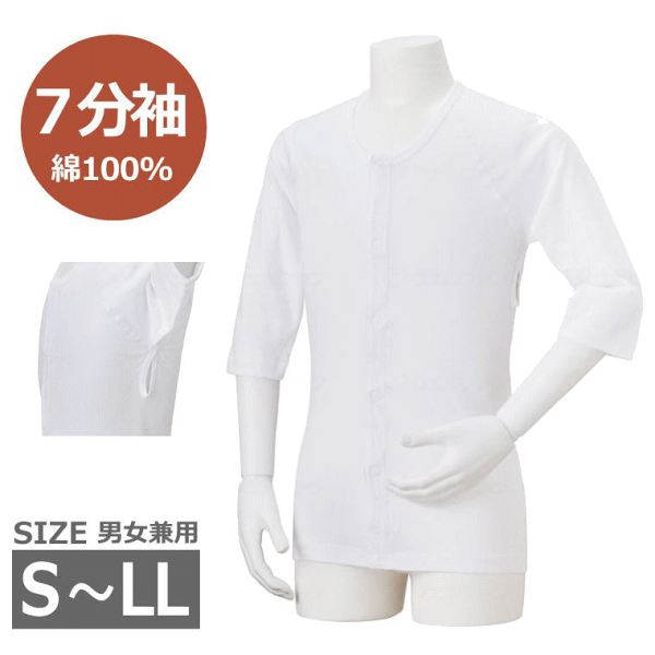 商品名 ソフラ肌着ライト男女兼用 七分袖 素材・材質 綿100% サイズ S 男性(胸囲)80-88cm 女性(バスト)79-87cm M 男性(胸囲)88-96cm 女性(バスト)86-94cm L 男性(胸囲)96-104cm 女性(バスト)93-101cm LL 男性(胸囲)104-112cm 女性(バスト)101-109cm 商品説明 肌ざわりの良い綿素材の抗菌加工品です ワンタッチで簡単開閉、着脱のしやすいデザインです 〇ラグラン袖を採用。