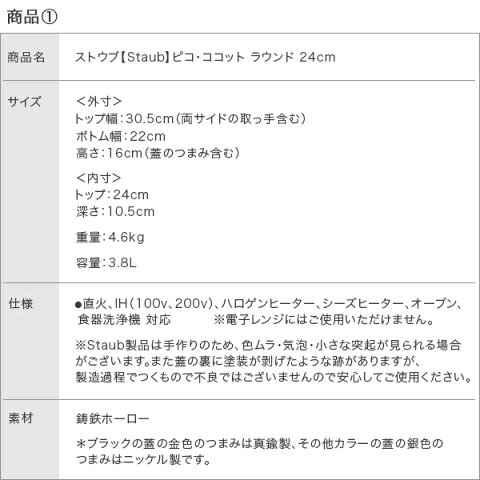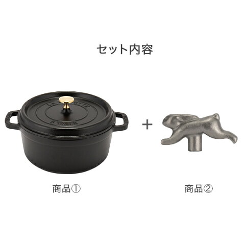 商品名ストウブ【Staub】ピコ・ココット ラウンド 24cm + アニマルノブ セットカラーピコ・ココット ラウンド・ブラック(1102425/40500-241-0)・グラファイトグレー(1102418/40500-246-0)・チェリー/レッド(1102406/40509-835-0)・マスタード/イエロー(1102412)・カンパーニュ(ホワイトトリュフ)<2019年新色>(11024107/40501-412-0)・リネン(セサミ)(110024146)アニマルノブ・ラビット(ウサギ)1990004 / 40510-661-0・ピッグ(ブタ)1990000 / 40510-657-0・カウ(ウシ)1990005 / 40511-486-0・ロブスター 1990015 / 40505-205-0商品1【ピコ ココット ラウンド】プロも愛用しているストウブの人気の鍋です。