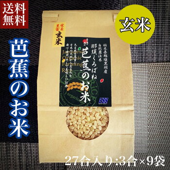 【スーパーSALE特別価格】 送料無料 お取り寄せ 芭蕉のお米 玄米 27合入り 自然栽培プレミアム有機 3合食べきりサイズ 栃木県産 栃木県那須黒羽産 自然農法米 那須くろばね 返礼品 ギフト プレゼント 贈り物 贈答 お米 米 ライス 有機米 敬老の日 お中元