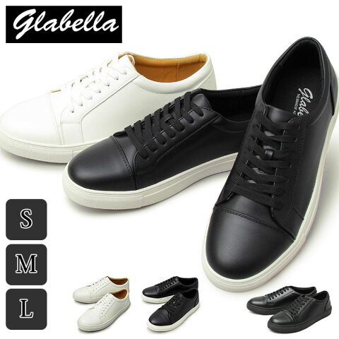 スニーカー メンズ 白 好評 ホワイト 黒 ブラック ローカット レースアップ シンプル フェイクレザー PUレザー カジュアル ストリート フォーマル glabella LACEUP SNEAKERS 靴 メンズシューズ