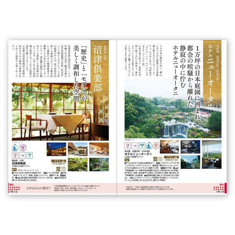 誰もが一度は憧れる老舗旅館、創業100年以上を誇り、伝統のおもてなしで迎えてくれる「加賀屋」、400年以上の歴史を有し、都心にありながら一万坪の日本庭園に囲まれた「ホテル ニューオータニ」の宿泊プラン、帝国ホテル東京「レ セゾン」のディナーコースをご用意しております。