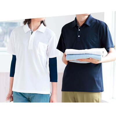 上下セットにできる⇒スクラブのボトムはコチラ!脱定番のポロ でチームウエアに新風を!【さらさらで涼しいドライ素材メッシュ】通気性に優れ、汗をかいてもベタつかず、着心地の良さを保ち、シワになりにくい。