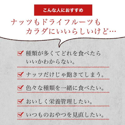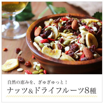 【賞味期限】商品ラベルに記載【販売者】株式会社オーガランド【詳細説明】ナッツもフルーツも両方食べたい!!そんなお声をいただき、ナッツとフルーツをミックスした贅沢な一袋が発売!!ナチュマート厳選の8種の自然の恵みをぎゅぎゅっと詰め込みました!ナッツと種の香ばしさに、フルーツの酸味がアクセントとなって食べだしたら手が止まらない!!もちろん美味しいだけじゃない!!ナッツも種もフルーツも、栄養豊富☆