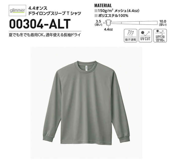 無地 長袖 tシャツ キッズ glimmer グリマー 00304 4.4オンス ドライTシャツ ジュニアサイズ 吸汗 速乾 スポーツ イベント 運動会 ユニフォーム チームtシャツ 【00304-ALT】 送料無料 通販A15